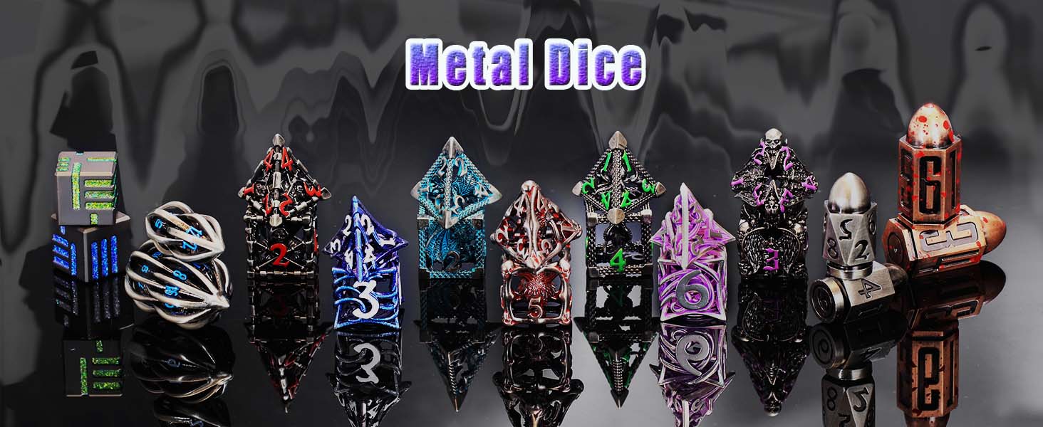 Fluorescence D&D Dice, Metal Dice Set Polyhedral Hollow Role Playing D and D Starter Dice for RPG Table Board Games
