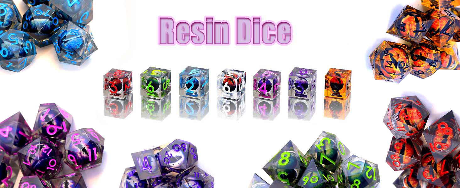 Liquid Core DND Dice, Dragon Eye Dice Set D&D Sharp Edge Resin Dungeons and Dragons Dice Polyhedral Beholder's Ttrpg Dice (light purple)