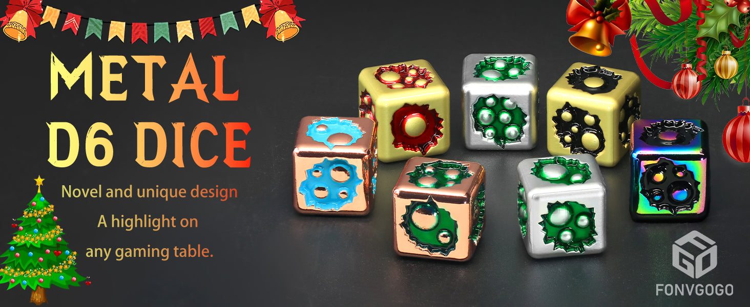 D6 Dice Set of Six Pcs 15mm, Cool Unique Metal 6 Sided Dice - D6 Gold Red