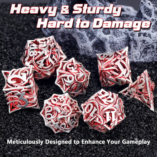 Metal DND Dice Set of 7 Hollow Polyhedral Metal Vine Dice Set - Red