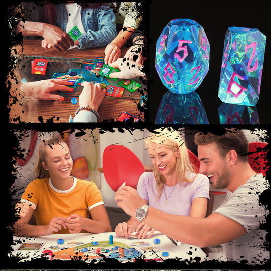 Liquid Core D&D Dice Set 7 Piece Sharp Edge Resin DND Dice - Blue