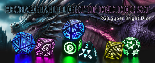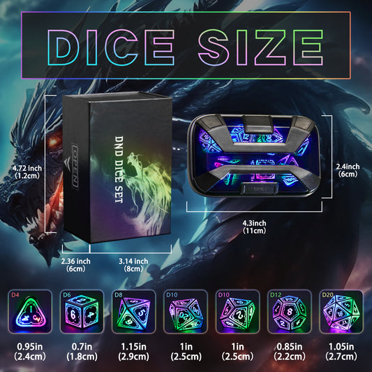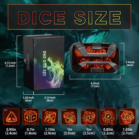 LED DND Dice Set Rechargeable, Cool Light up Dice Wireless Charging for Dungeons n Dragons, Polyhedral Role Playing Dice D&D Gifts(RGB-Dragon Scale)