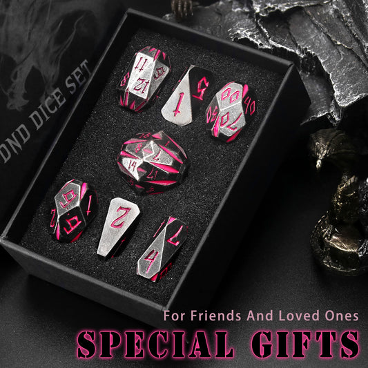 Metal Dice DND Polyhedral Dice Set Stonehenge Theme RPG Dice-Black Pink
