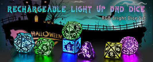 LED DND Dice Set Rechargeable, Cool Light up Dice Wireless Charging for Dungeons n Dragons, Polyhedral Role Playing Dice DnD Gifts(RGB-Shackles)