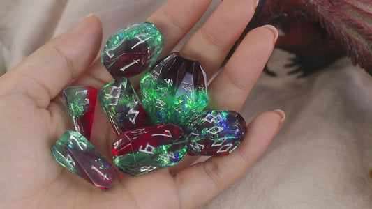 Unique DND Polyhedral Resin Dice Set Stonehenge Theme RPG Dice - Green and Silver