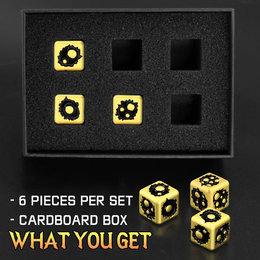 D6 Dice Set of Six Pcs 15mm, Cool Unique Metal 6 Sided Dice -D6 Gold Black