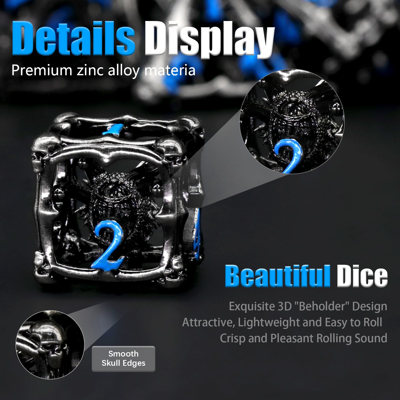 The dice are rather awesome and the detail is beautiful. A great addition to anyone who likes having cool dice sets for their games.