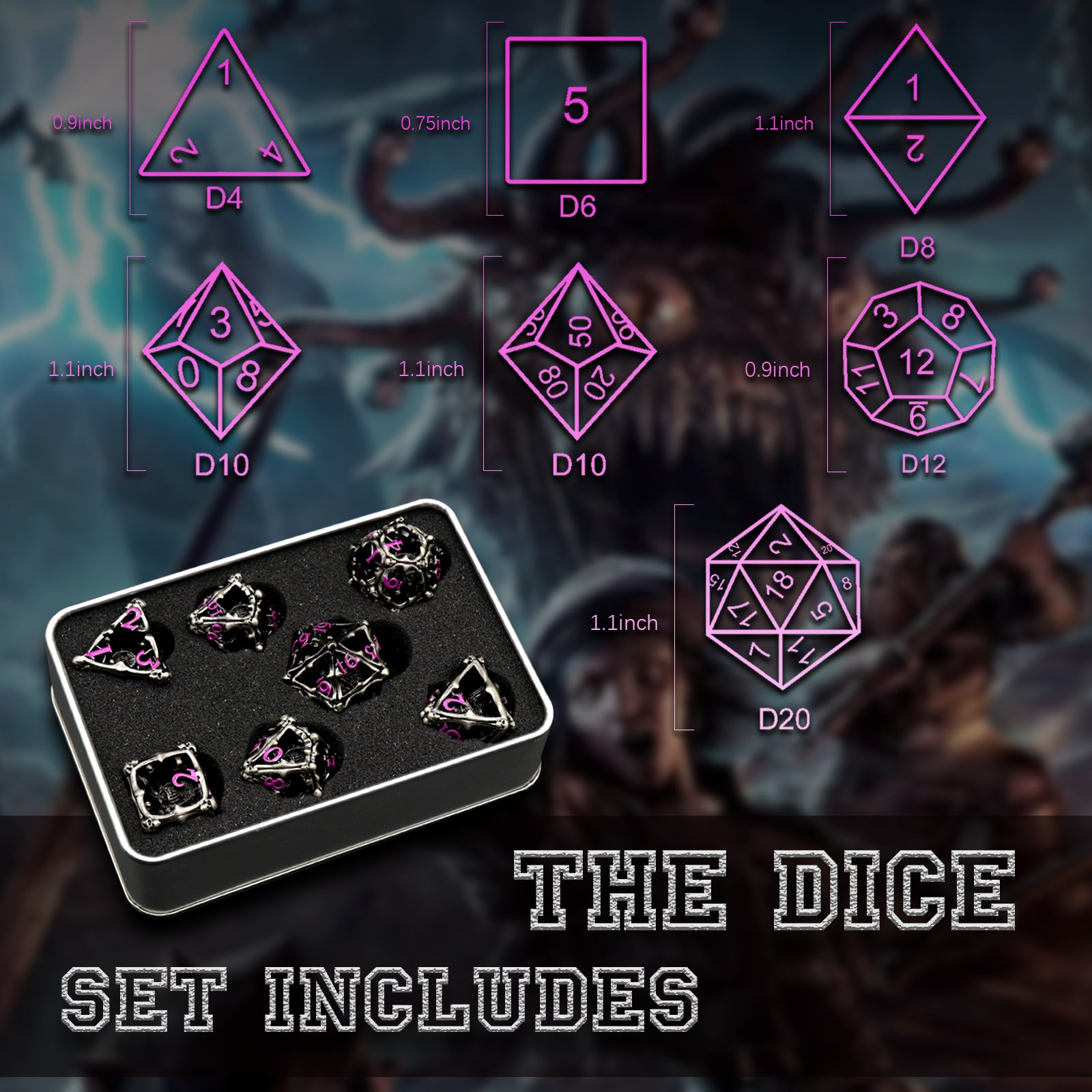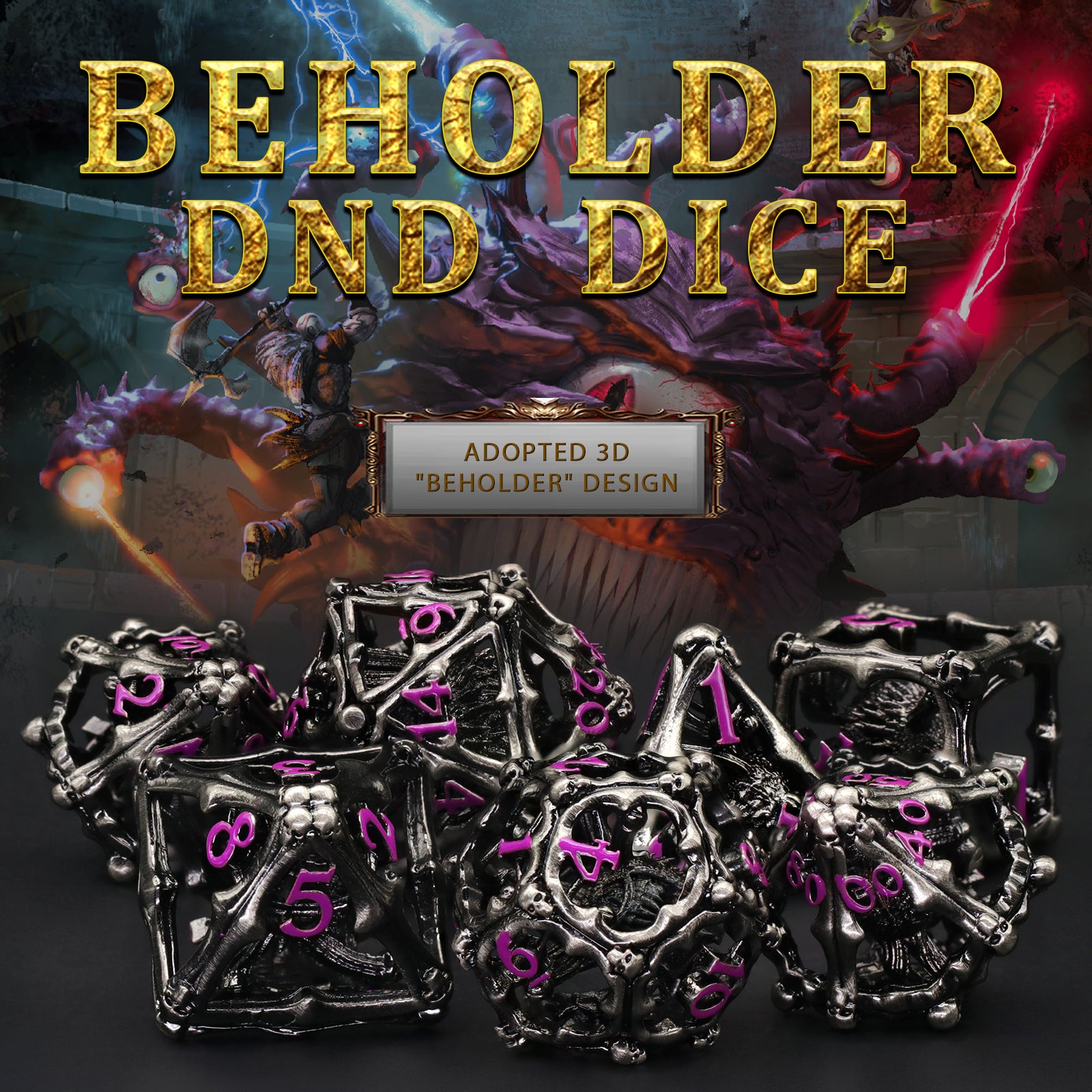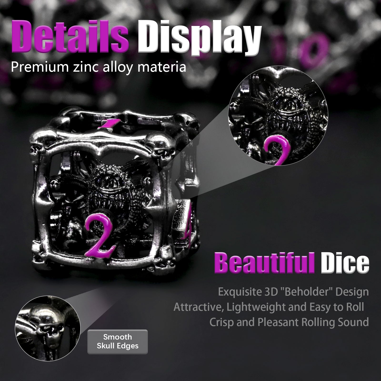 3D Eye Monster DND Metal Dice,7PC/Set Dice for Dungeons and Dragons Dices Polyhedral Dice - Purple Number