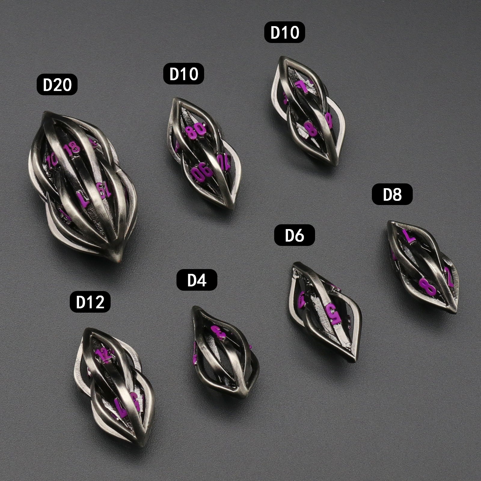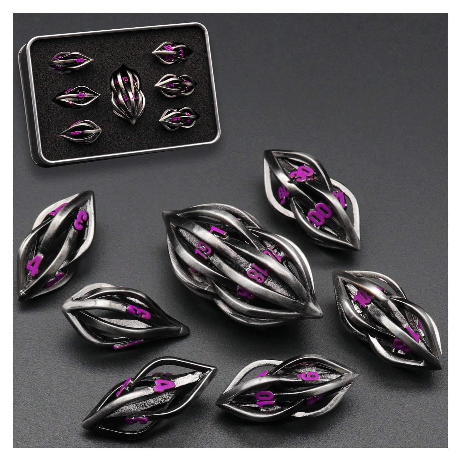 Arcanum DND Metal dice,Role Playing Gaming Dice Metal Dice Set D&D with Box Hollow Polyhedral Dice - Purple Number