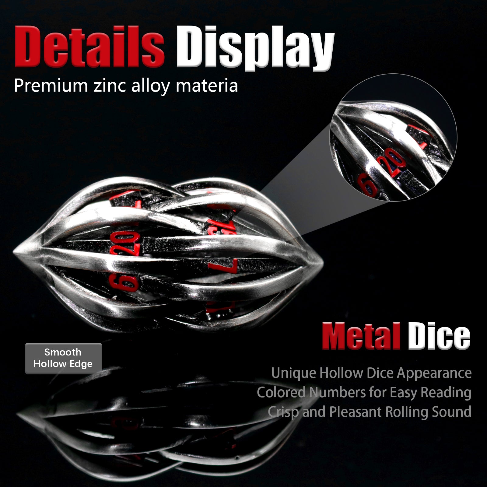 - 【GREAT SOUND】 A gorgeous case with foam liner is great for dice placement. 7 pieces metal hollow dice in it including D4, D6, D8, D10 (0-9), D10 (00-90), D12, D20. When you roll the dice, they will make a wonderful crisp jingle.