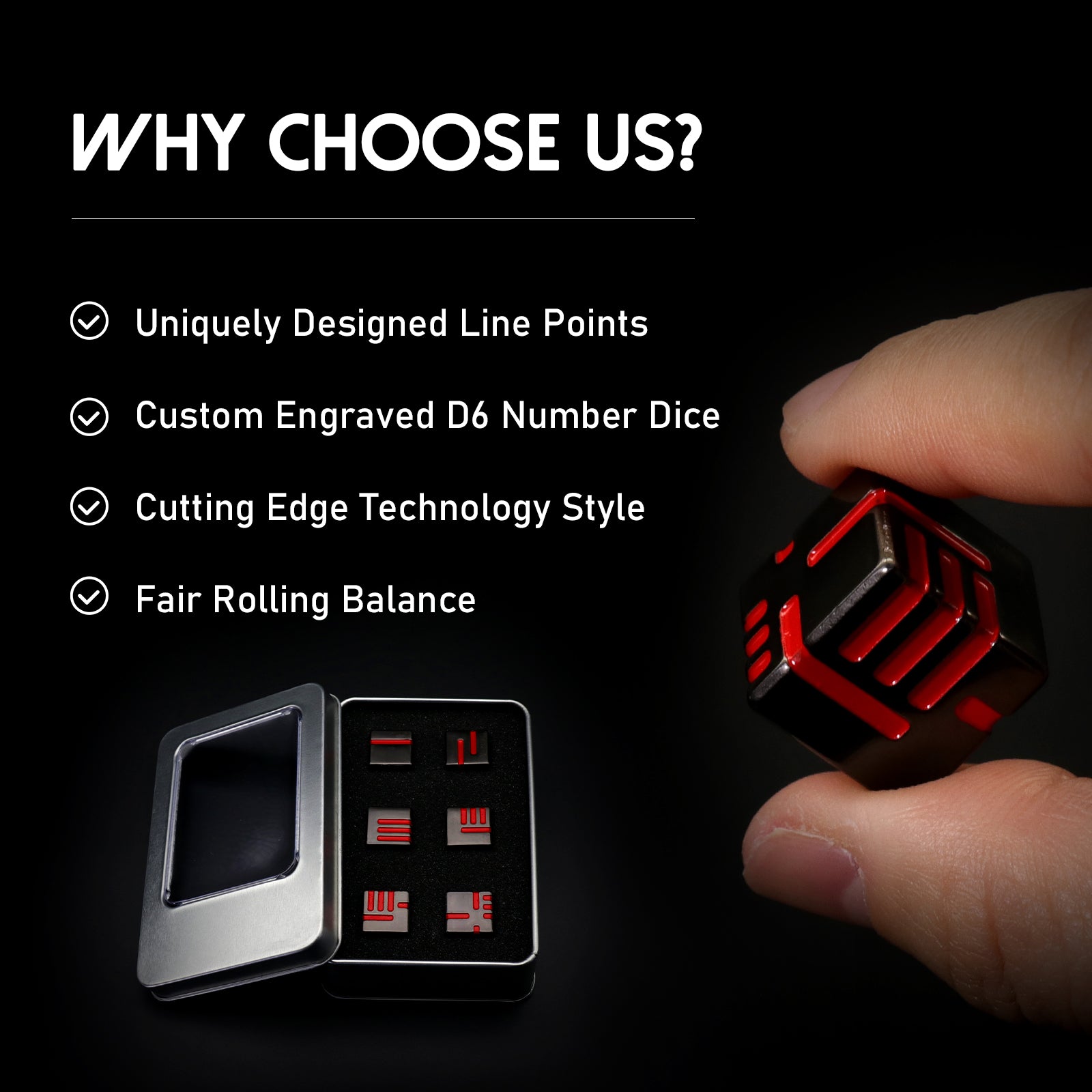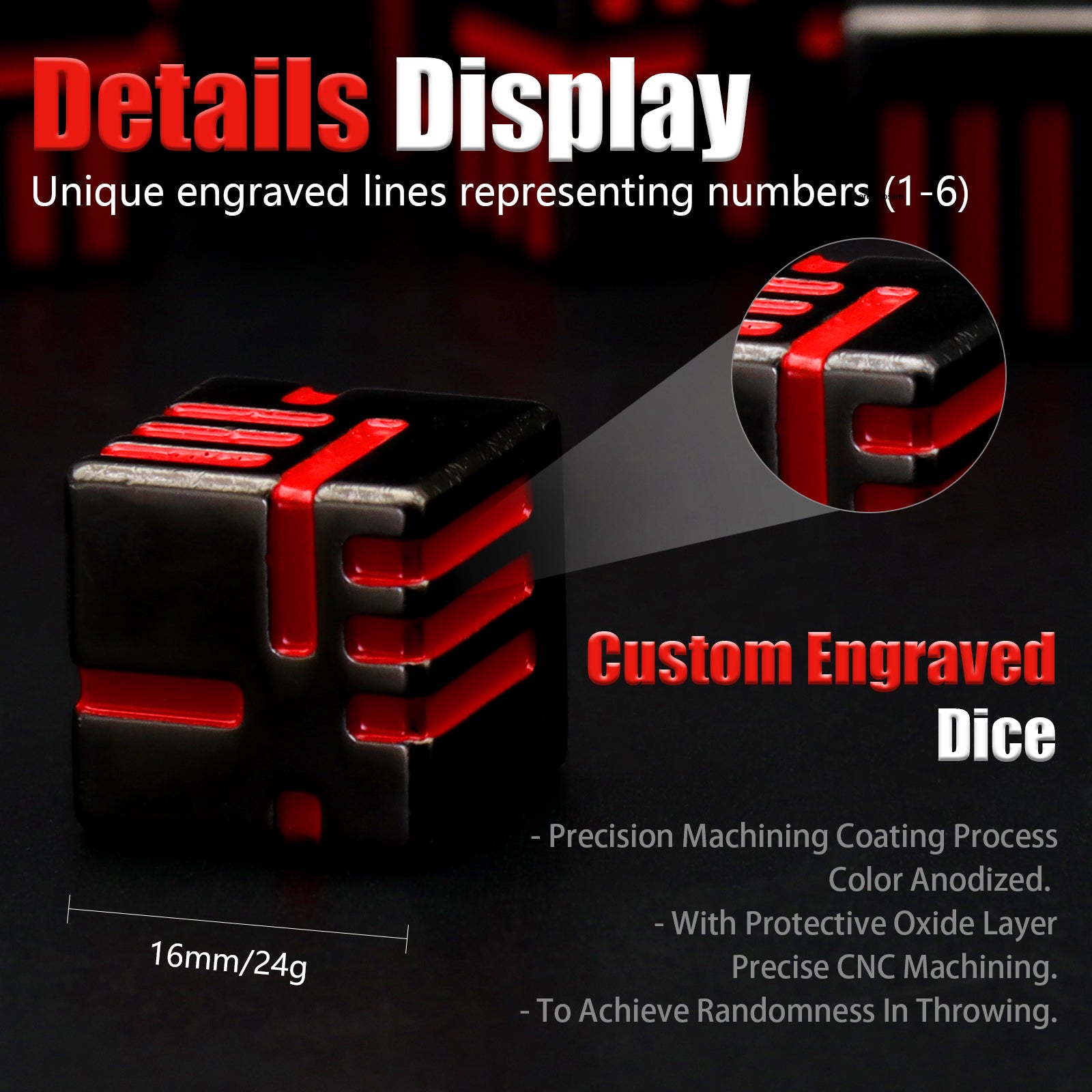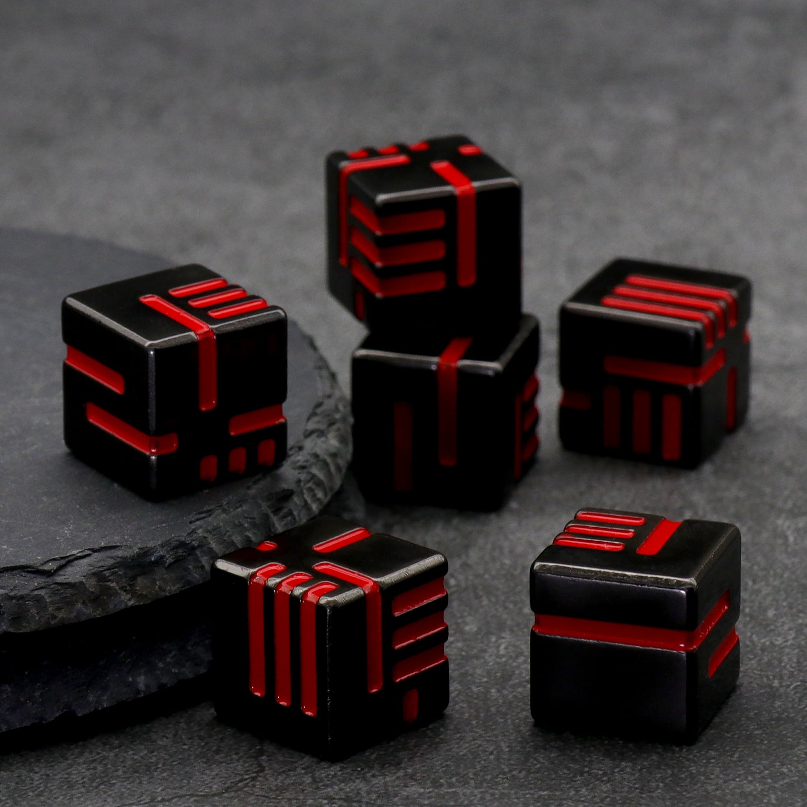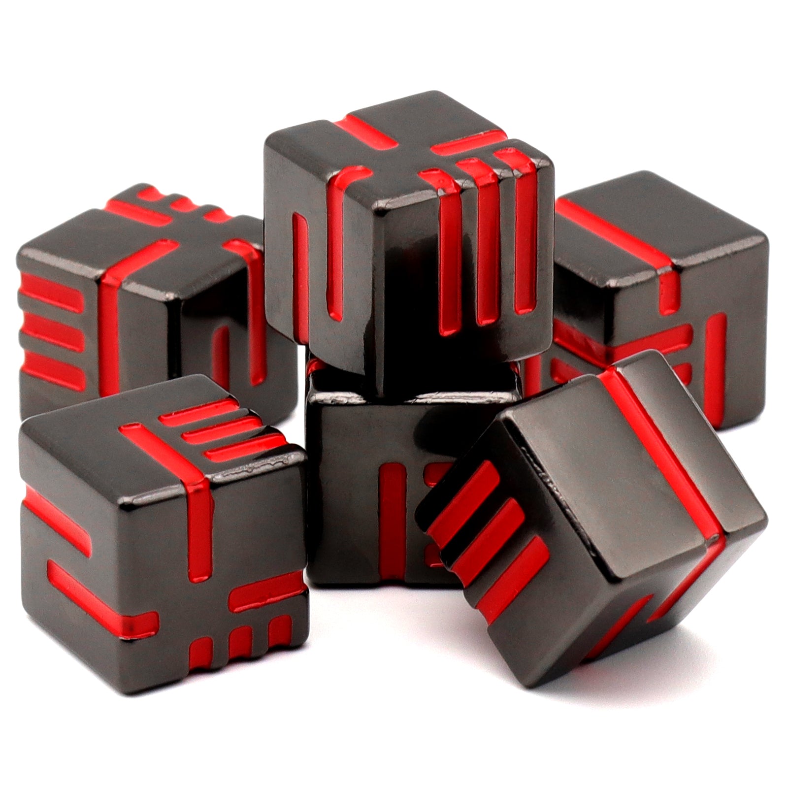 - COOL & UNIQUE DESIGN: Each side of the dice has irregular lines that represent specific numbers. The cool and unique design brings more fun to players. One set dice total 6 PCS of D6 Metal Dice. To protect table surface, it is recommended to use with trays and mats.