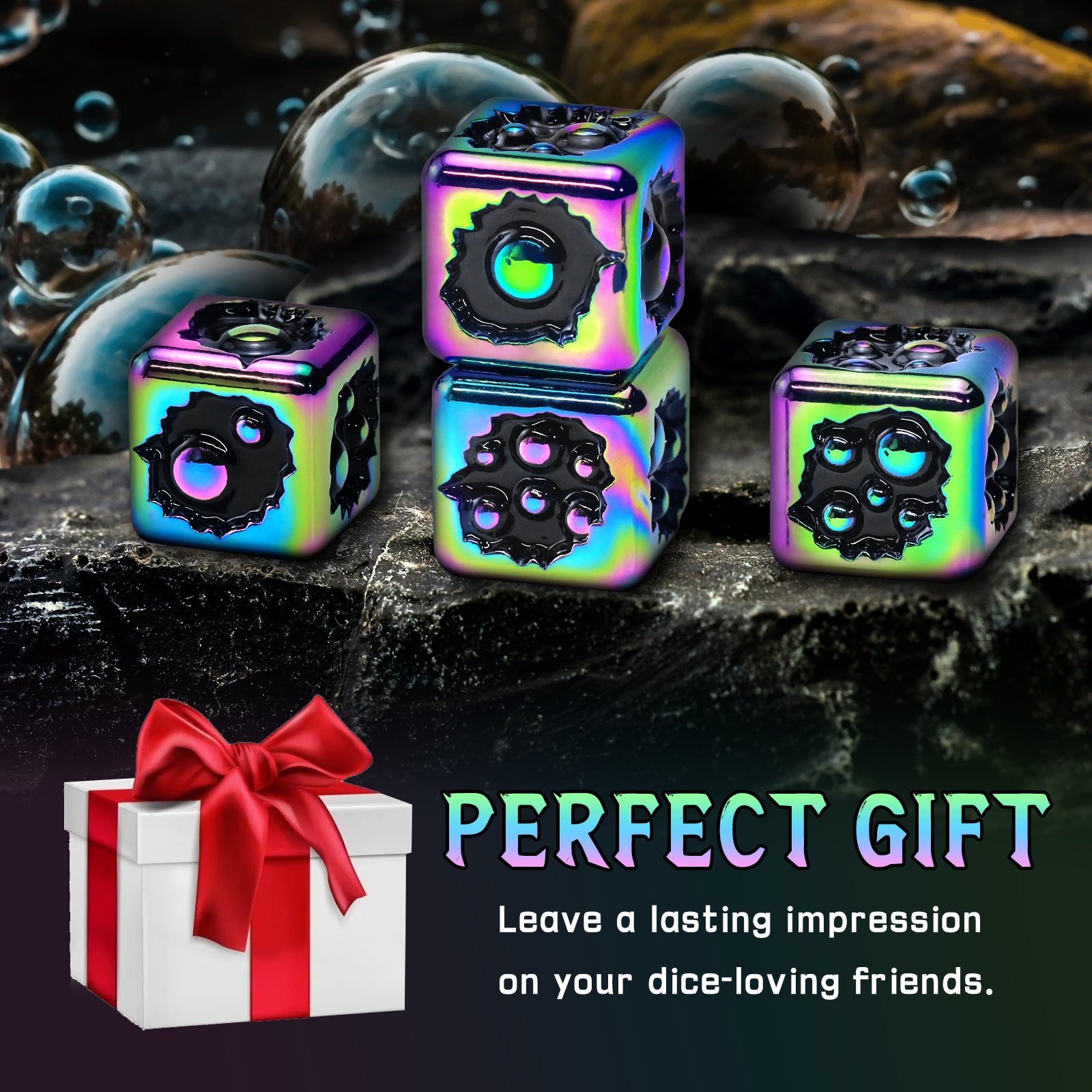 - Fair Rolling: This set features a bubble theme, Designed for both aesthetics and precision, these metal dice offers a random roll and balanced outcome. Perfect for fair and consistent gameplay