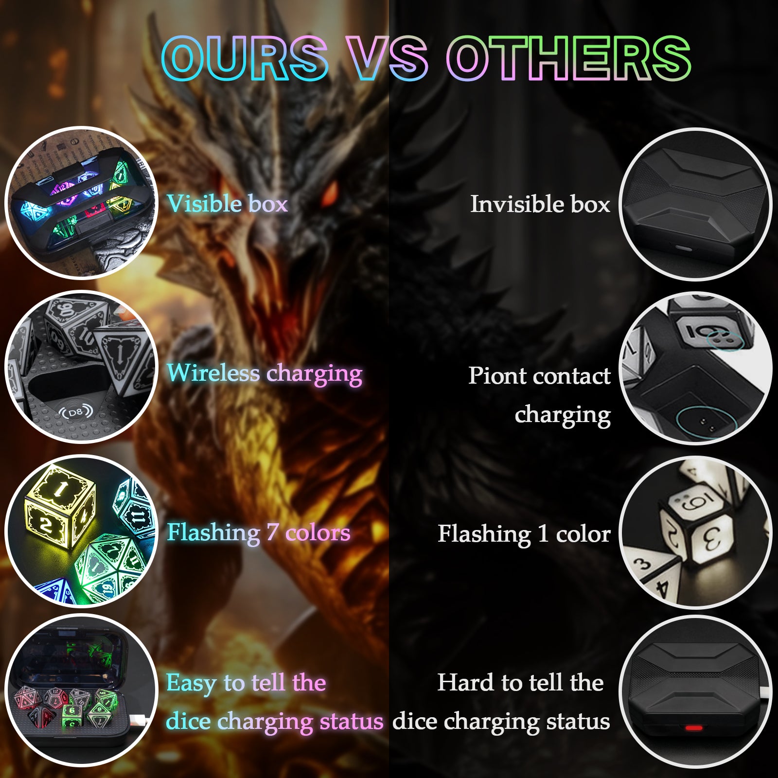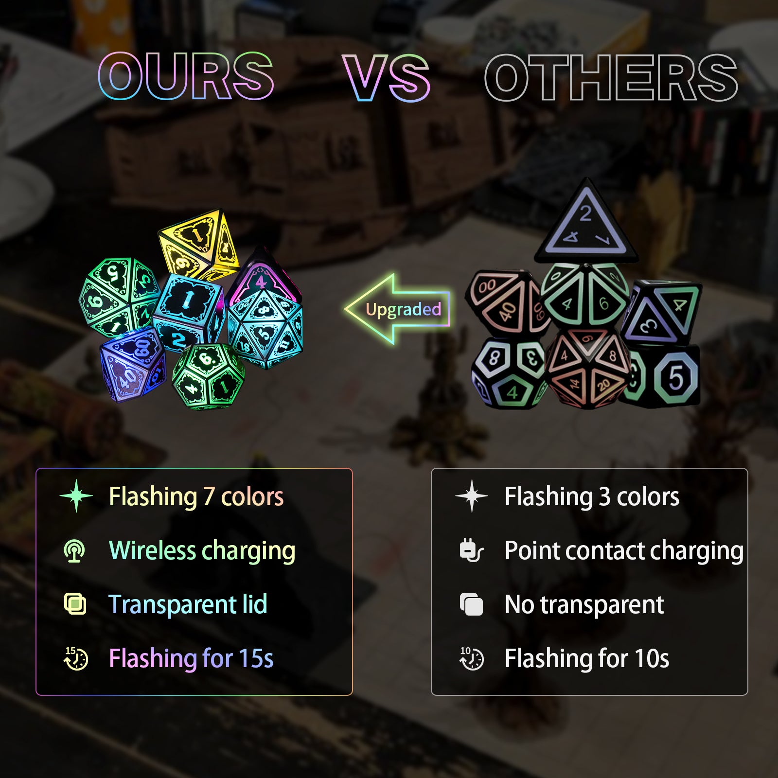DND Dice Wireless Charging LED Dice Rechargeable Light up Dice Set