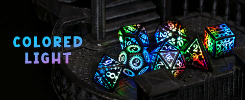 - Light up Dice - The light up dice with built-in led beads emit a colored glow and flash for 20 seconds when rolled or collisions. It can be used continuously for 6 hours after 2 hours charging.