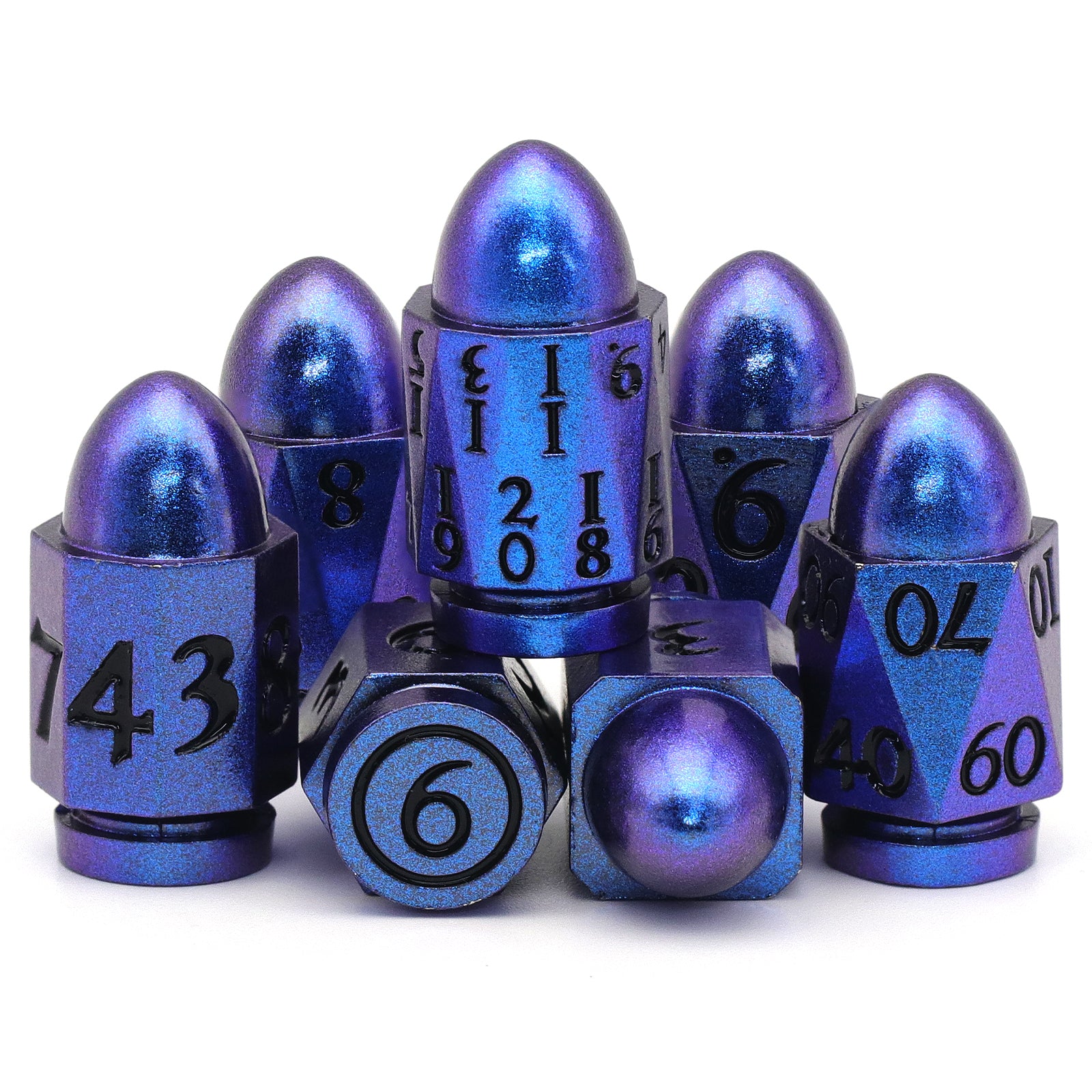 DND Metal Bullet Dice are a great choice for anyone who wants a set of durable and stylish dice for their Dungeons & Dragons or other tabletop RPG game. These dice are made from high-quality metal and have a bullet-like design that makes them stand out on the gaming table.