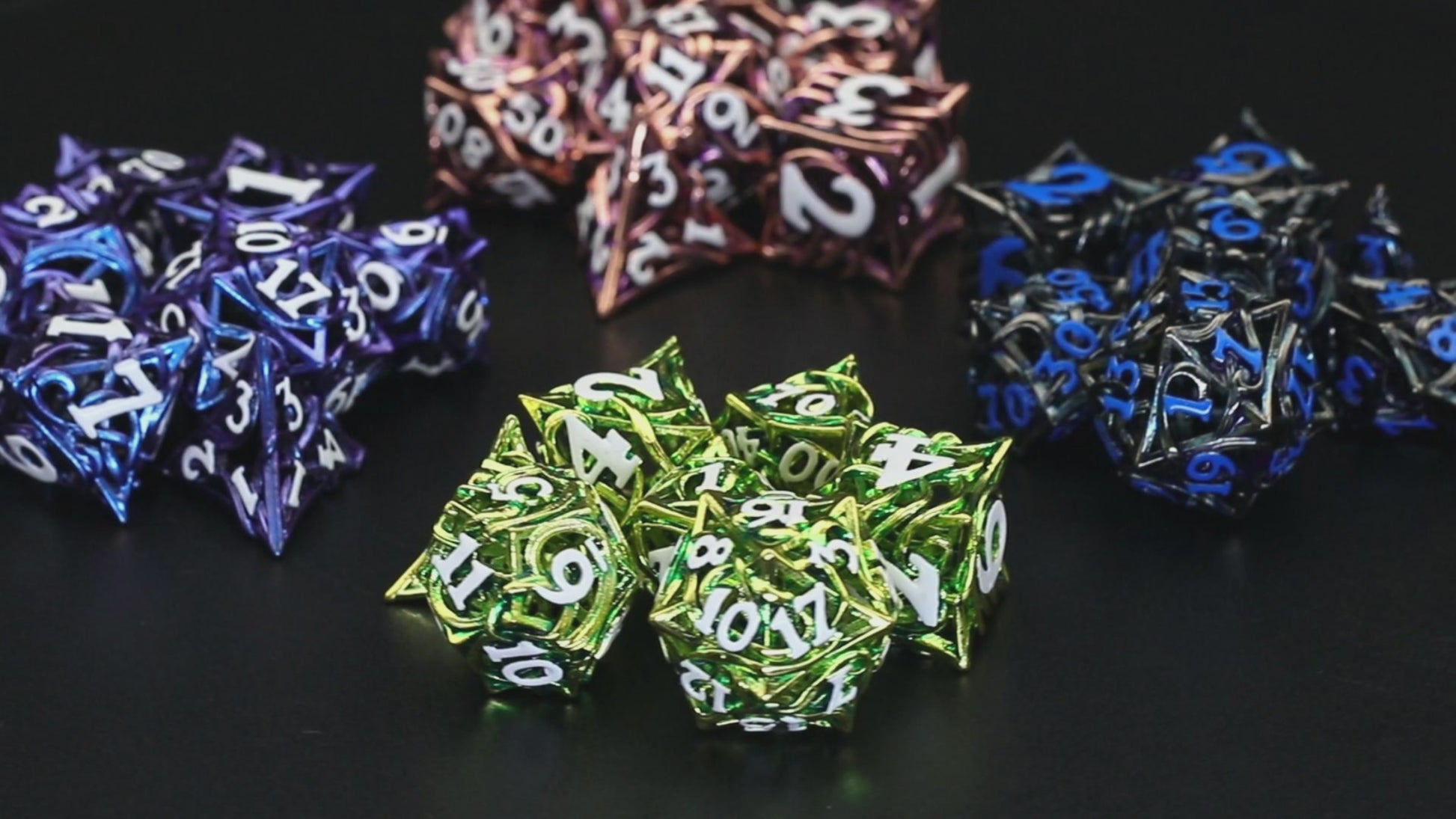 - 【Hollow Metal Dice】Full set weighs approximately 60g(2.1oz) and features a hollow design, making them lighter and more comfortable to roll. The vine lines and sharp coners make them feel great in the hand. Due to the durable coating, these gaming dice are resistant to wear and tear, preserving their smooth and non-fading appearance for years of continuous use.