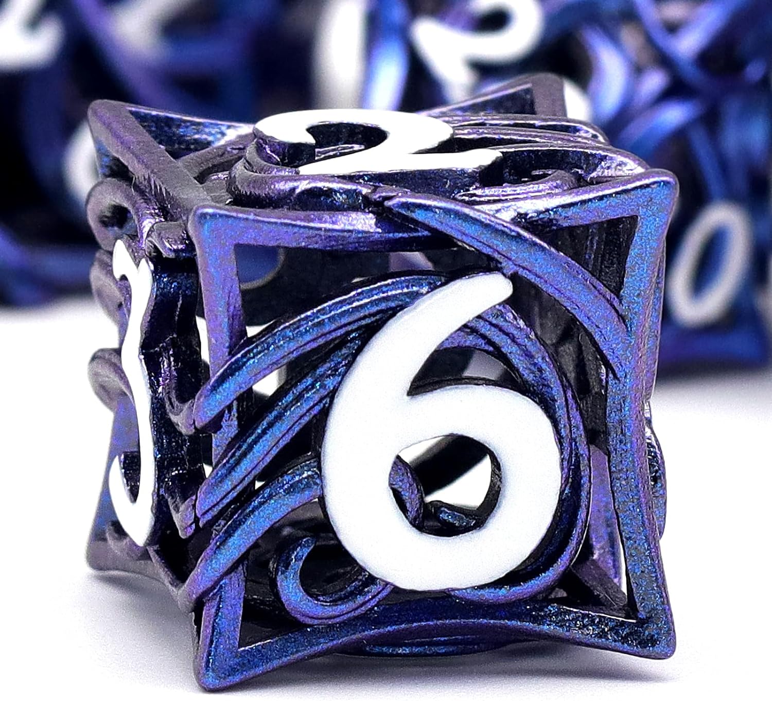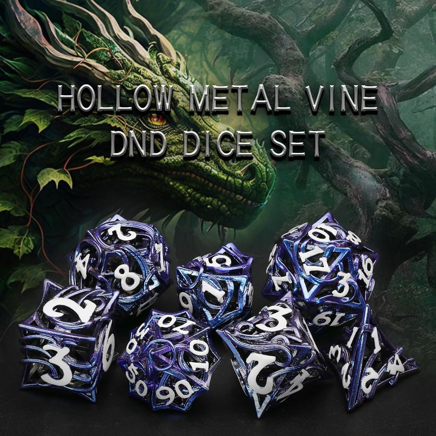 7PCS Metal DND Dice Set Hollow Polyhedral Hollowl Vine Dice Set D&D Role Playing D and D RPG Dice ( Blue)