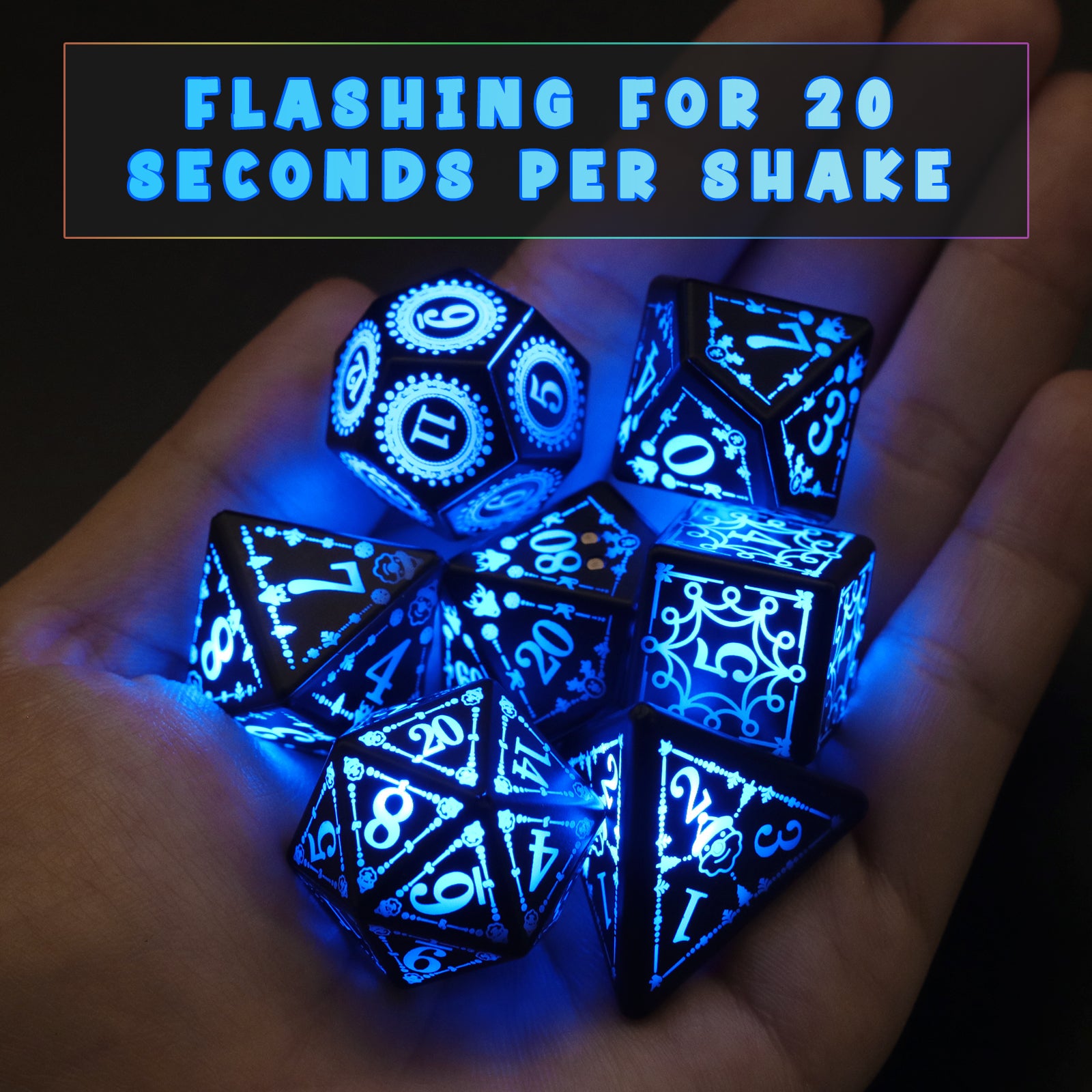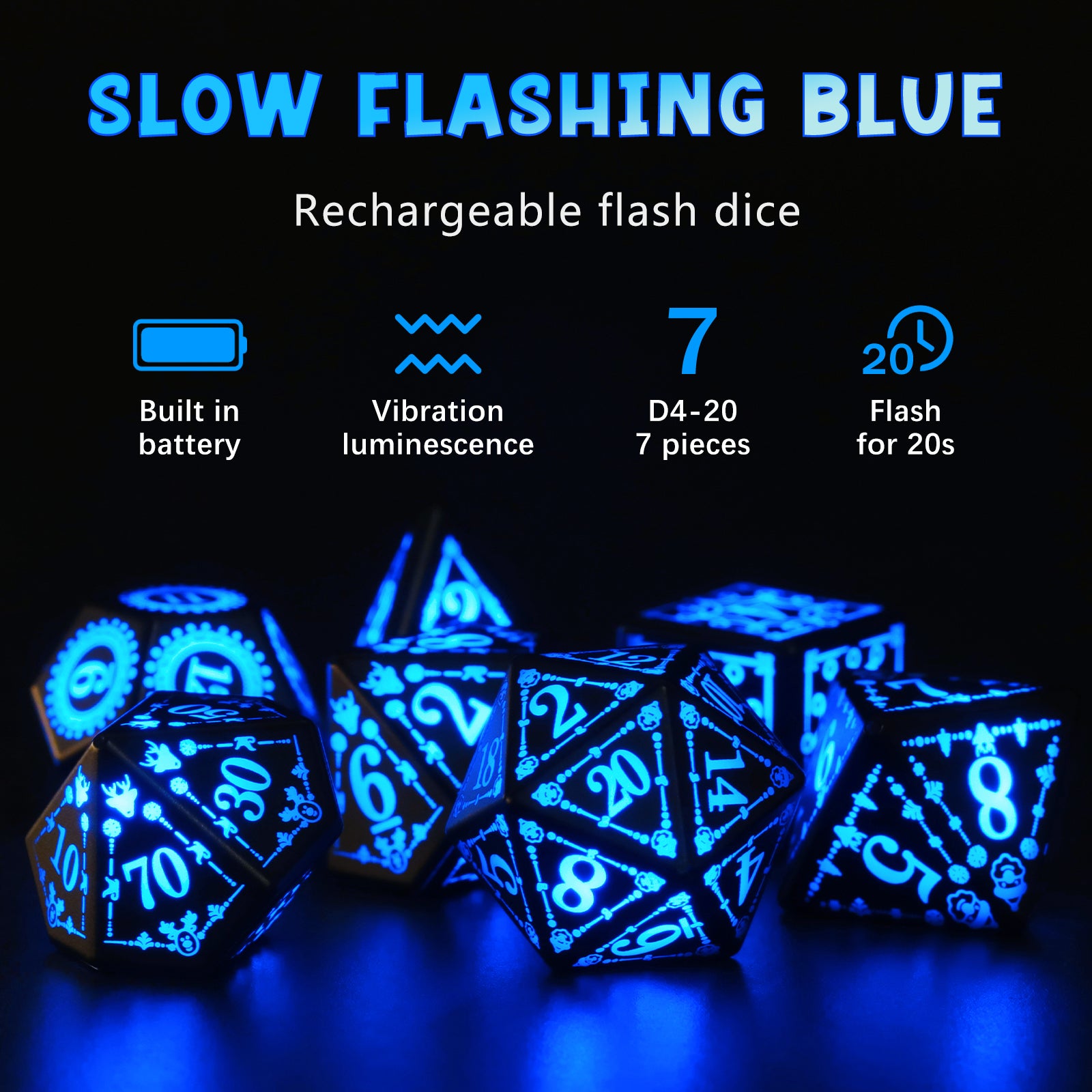 LED Dice, Light up DND Dice Rechargeable Flashing D&D Dice Set Flashing Electronic Glow Dice for Dungeons and Dragons Ttrpg Role Playing Game RGB Dice Blue Light