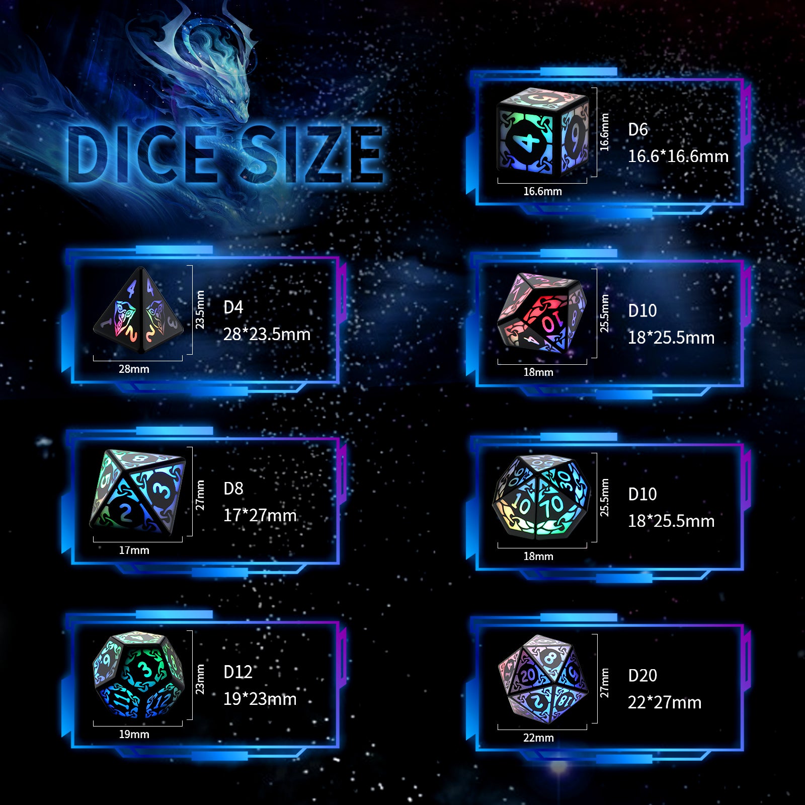 🎲【D&D Dice Set】For dnd dice set is composed of 7 black dice, including D4, D6, D8 and D10 (double Precision), D10 (odd Number), D12 and D20. You may be ready to take d&d or table games to a new level