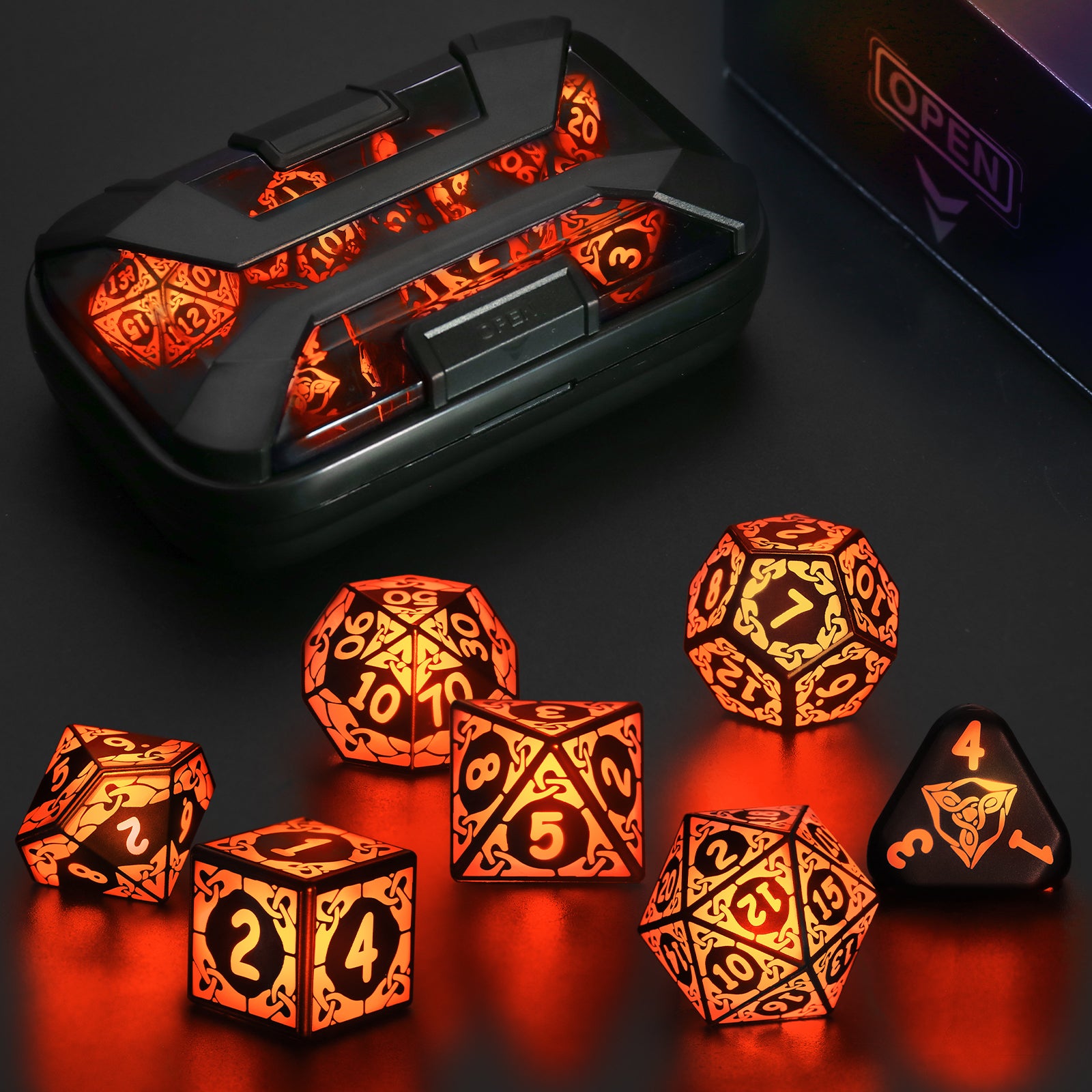 LED Dice Set DND, Cool Light up Dice Set Rechargeable-Orange-Shackles