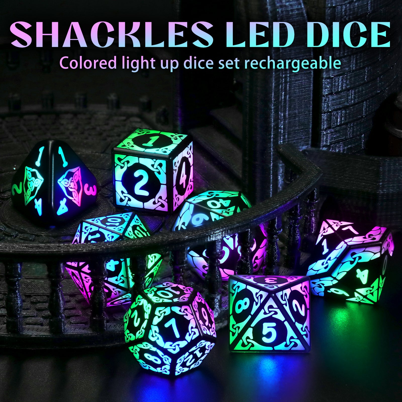 LED Dice Set DND, Cool Light up Dice Set with Charging Box -Colorful-Shackles
