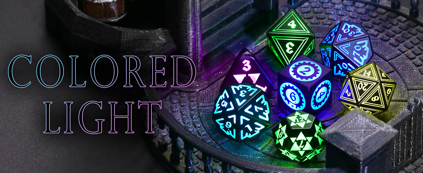 - Rechargeable Dice: The dnd dice with built-in RGB lights emit about seven colors and slowly flash for 15 s when rolled or collisions. They will emit red light when charging and will turn green when fully charged, visible outside the translucent charging box