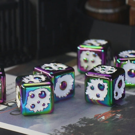 Unique D6 Dice:Stand out in your DND campaigns with our 6 - piece metal d6 dice set. Each die features a design inspired by bubbling venom, where poison bubble represent numbers 1 - 6, adding an immersive, dark - fantasy touch to your tabletop TTRPGs