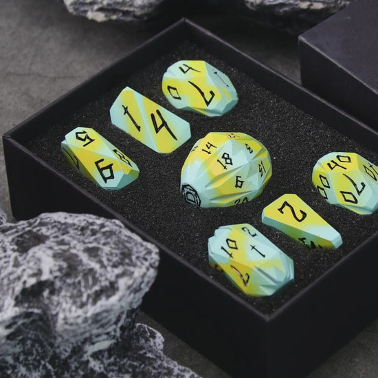- UNIQUE & COOL DND DICE: This dice is inspired by the irregular stones found in nature, these dice feature a distinctive, cool design that makes them stand out on the gaming table, enhancing your immersion in the world of DND dice games
