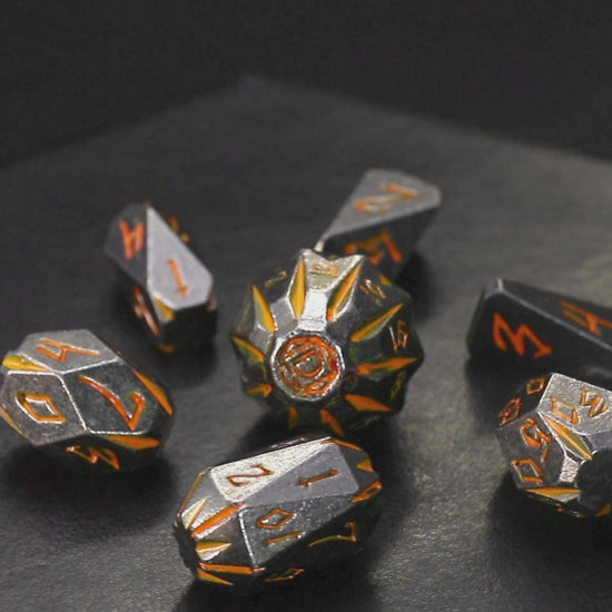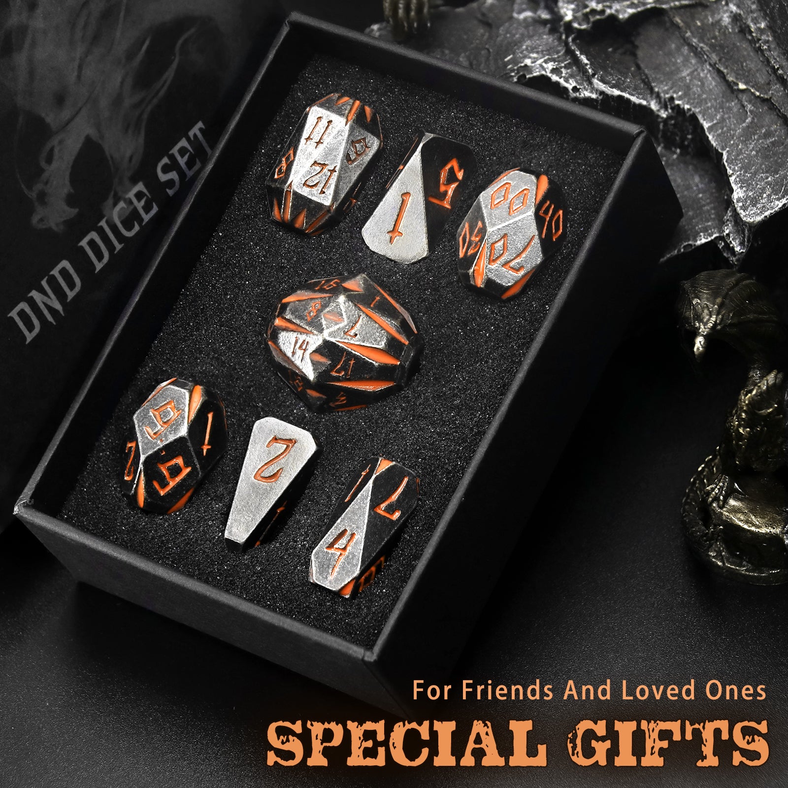 - ⚔️DND Metal Dice Set⚔️ Feel the raw power of ancient legends with these heavyweight metal polyhedral dice. The textured stone-like surface gives authentic tabletop RPG immersion - like rolling actual druidic relics! Perfect for DND nights when you want dnd dice that look as cool as your epic character backstory