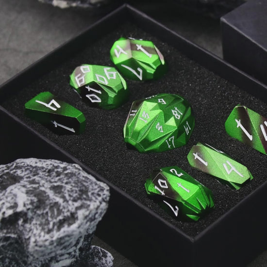 Metal Dice Set D and D with Cardboard Box Unique Cool RPG Polyhedral Dice - Black Green