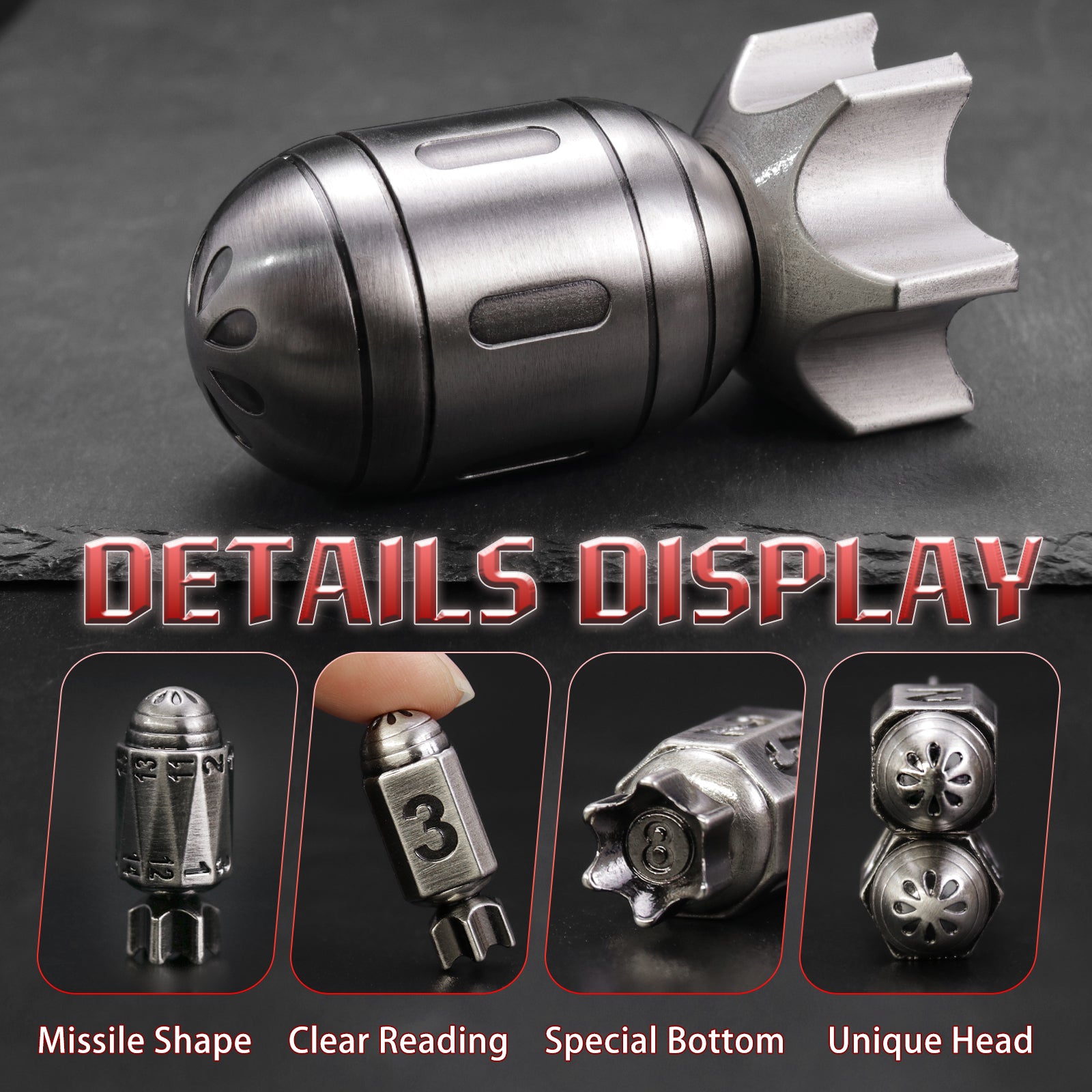 - SOLID METAL CONSTRUCTION: The spinning missile container is made of solid metal with three parts: lid, cylinder, and base. Both body and base can be rotated manually. The smooth spinning action providing an engaging experience for relaxation or game play