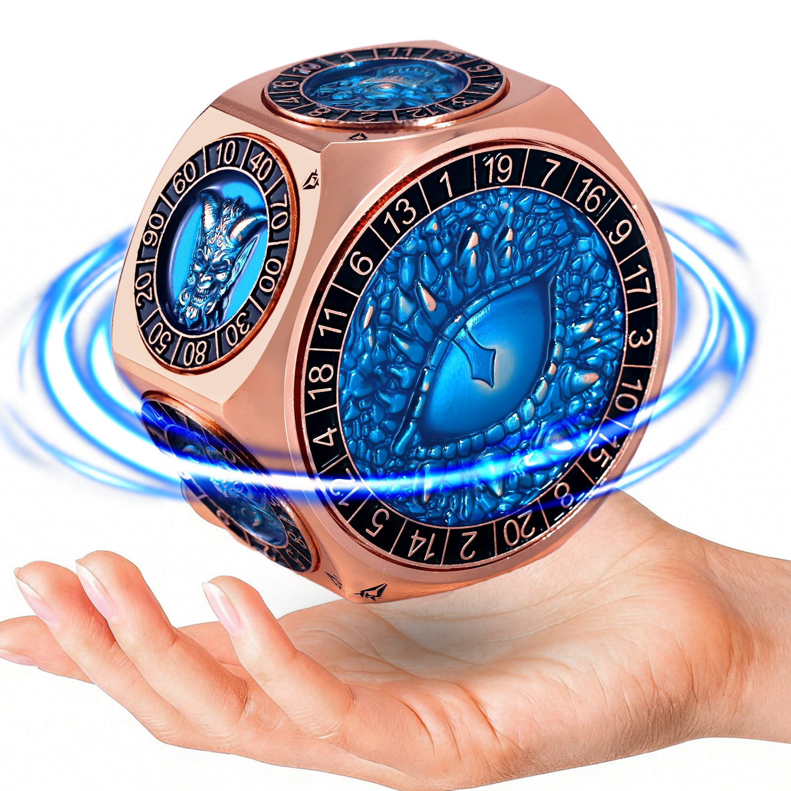 - 🦾 8-IN-1 Full Functionality With Dual D20: Upgrade your gameplay with this innovative 8-sided spinning dice. It replaces your entire dnd dice set, featuring dedicated faces for D4, D6, D8, D10, D12, D100, and a unique DUAL D20 for rolling advantage/disadvantage in D and D 5e. All functions are precision-engineered into a single, hefty metal dice
